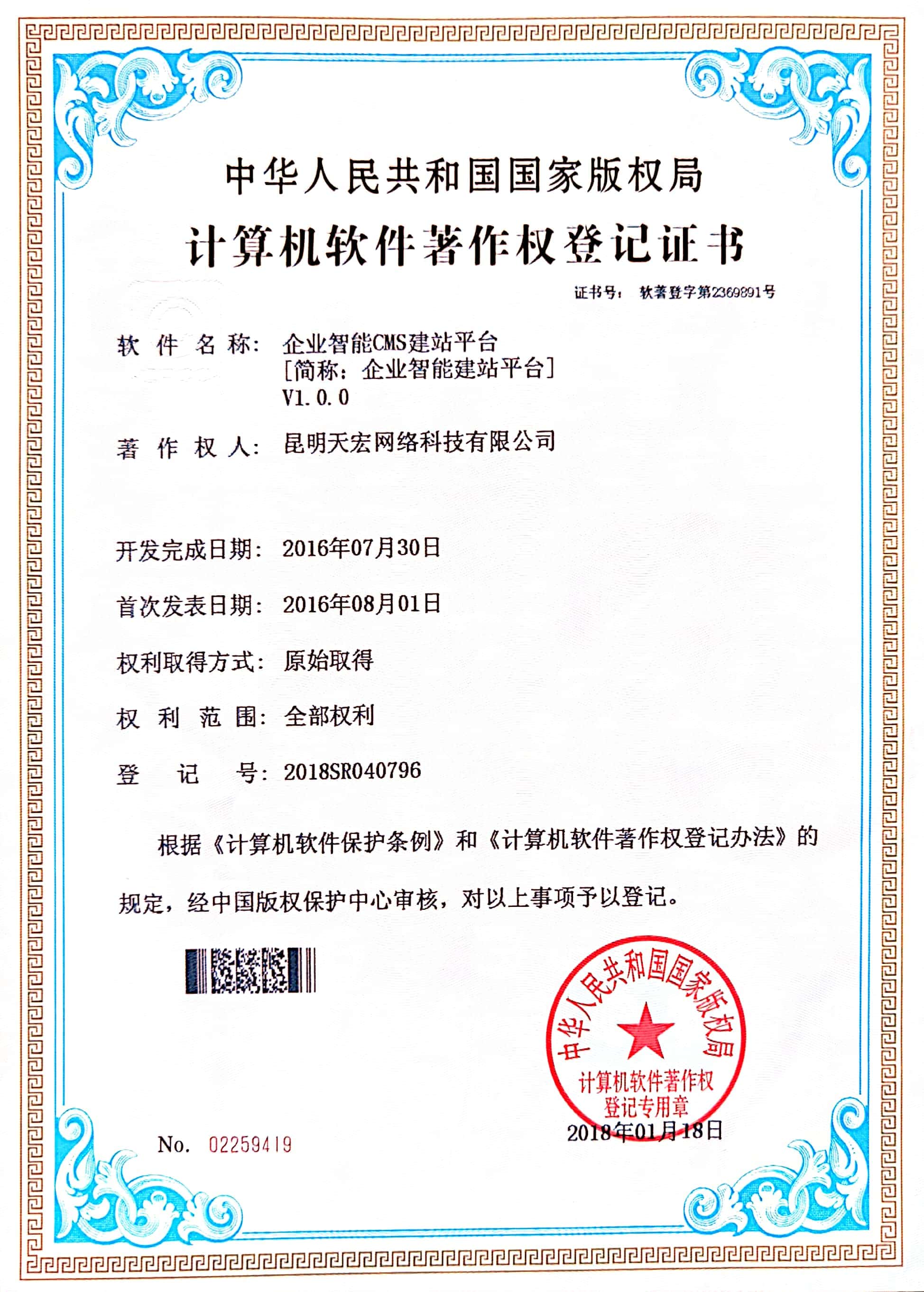 天宏網絡通過不斷的研發創新,現擁有50多項計算機軟著證書,包括多商家點餐系統、門店收銀管理系統、通用OA協同辦公管理系統、智慧商圈運營管理平臺、天宏健康智慧+系統、同城O2O管理系統等。